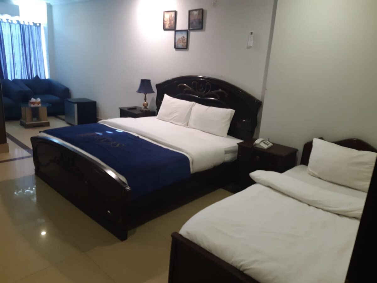 Guests enjoy air-conditioned rooms, fast WiFi, comfortable bedding, 24/7 service, and easy access to Islamabad’s top landmarks including Centaurus Mall, Faisal Mosque, PIMS Hospital, Blue Area, and Pakistan Monument. The location makes it perfect for short stays, long stays, medical visits, and business trips.