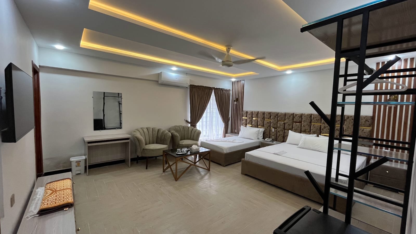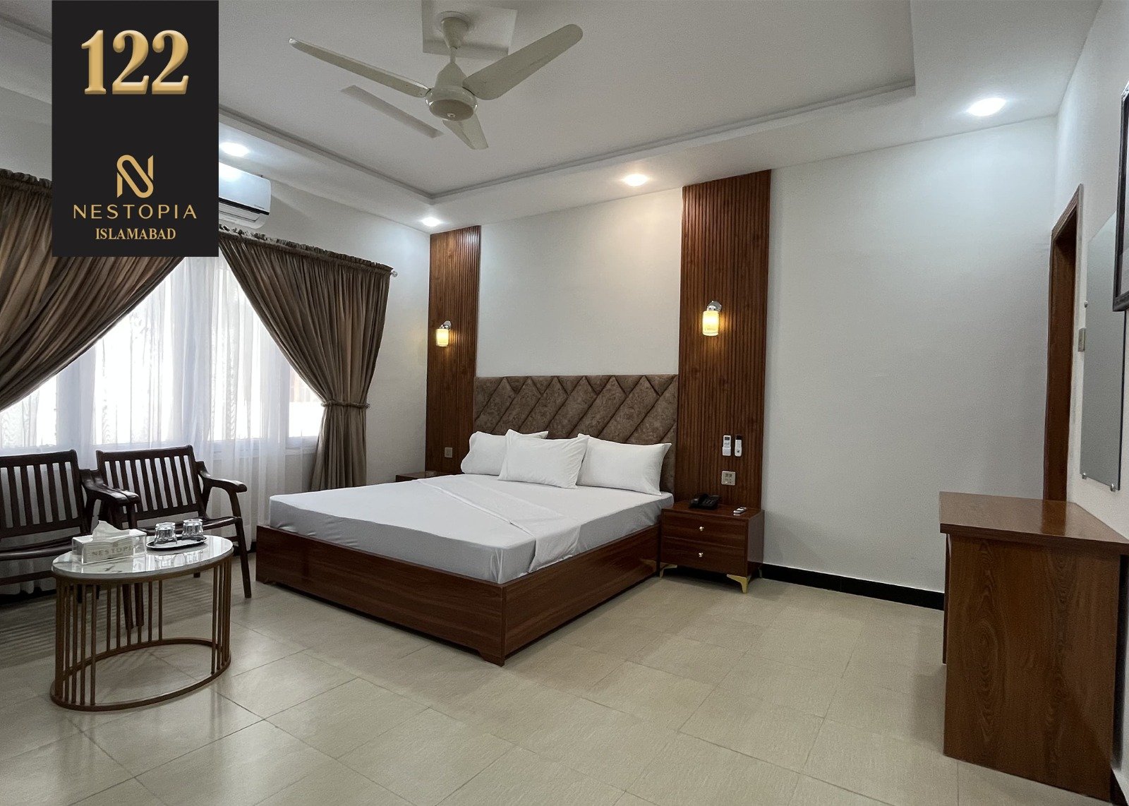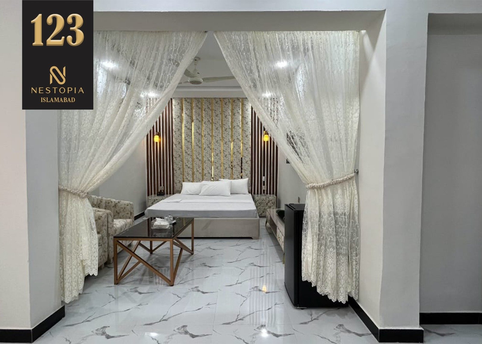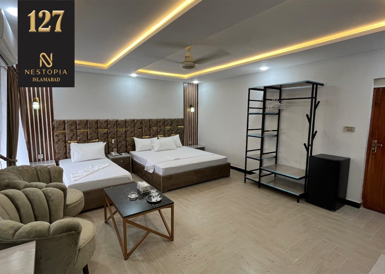 Nestopia Guest House Islamabad is a well-maintained 2-star bed & breakfast offering modern, comfortable rooms in the central area of G-6/3 Islamabad. Ideal for families, business travelers, and tourists, the guest house provides clean twin, double, triple, and family rooms along with complimentary breakfast, free Wi-Fi, secure parking, and daily housekeeping.