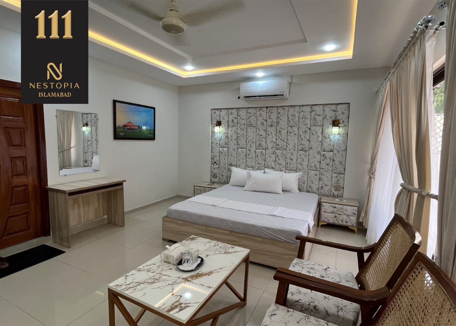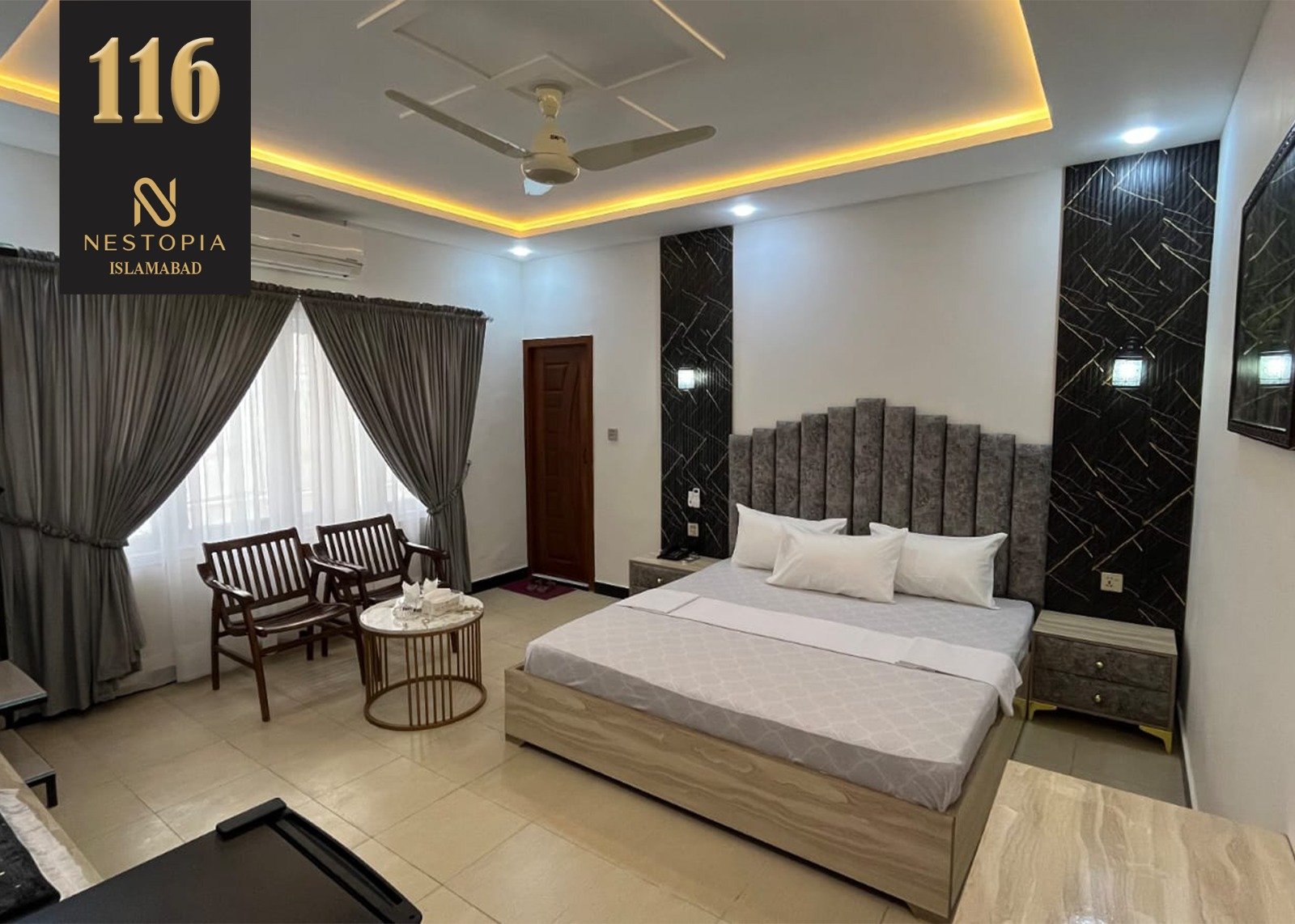 Its prime location offers quick access to major attractions, shopping malls, business centers, and public transport, making it a convenient choice for short stays, long stays, medical visits, and corporate travel. With a peaceful environment and essential facilities, Nestopia Guest House ensures a relaxed and affordable stay in the heart of Islamabad.